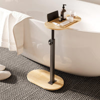 • 【Freestanding Table】The landing design of this bath side table is perfect for small spaces. You can have the base and tray facing the same direction or add weights to the base to make it more stable