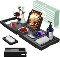 • 🛀🏼COMFY BATH TIME - The bathtub caddy tray is designed with diversified compartments, and everything you need is within easy reach,Bring your wife or husband for the most relaxing bath experience for two and enjoy a home spa treatment in luxury.