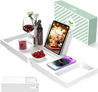 • 🛀🏼ADJUSTABLE BATH TRAY:This bathtub caddy was specifically designed to expand from 30 inches to 43 inches,fits all standard roman bathtub,you just need to manually adjust it to the right length and don't need any tools.