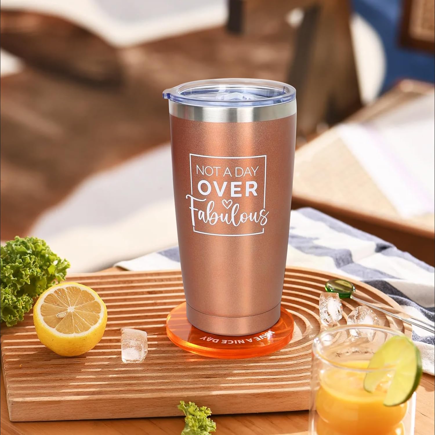 - A Gift Set for Women of Any Age: Gift box includes 1×20 oz wine tumbler with the motto "Not A Day Over Fabulous",1×Soy Candle,1×Diamond Hand Soap,1×bath bomb,1× delicate and stylish bracelet,1×eye mask,a pair of socks,and a greeting card with your special message. This gift box has full coverage of the accessories you need to bathe, sleep, dress up and relax yourself, making it a very practical gift set box!