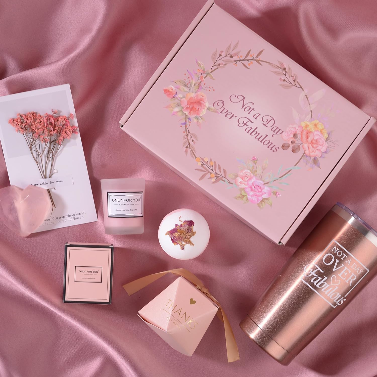 - 🎁Maybe you are finding gifts for women :and this gifts set specially designed Birthday gifts for women box will be your answer,What You Will Get:9 Pieces of unique gifts. The customized gift box will give her an unforgettable unboxing experience: includes one 200 oz Insulated StainlessSteel Tumbler1xPremium Heart type Soap 1xSoy Scented Candle 1xRose Bath Ball 1xDried flower greeting cards 1xPair Plush Socks 1xGet Well Soon Gifts Card (Write Your Blessing)Gifts for Women box is designed to provide the best experience. No need to repackage .