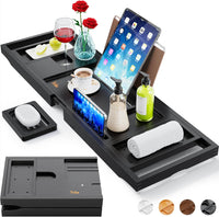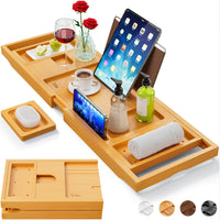 • MULTIFUNCTION BATH TRAY: Bathtub caddy tray for luxury bath is not only a bath table but also a bathroom organizer. And bathtub iPad holder have 3 angled slots fit people of different heights and find the desired angle for better viewing experience.
